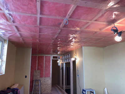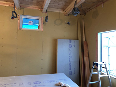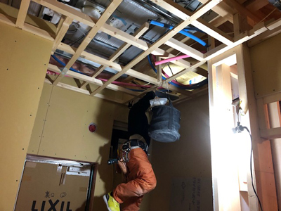 内部では、天井気密シート貼、など行なっております。