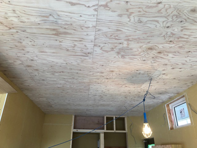 大工工事では天井合板貼が完了し、床貼りなど行なっております。