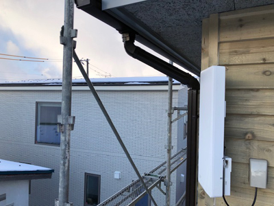 明日足場が外れるため、アンテナ、フード、コーキングなどが適正かを確認しました。