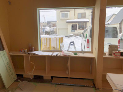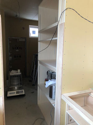 二階建具枠取り付けや、一階造作を行なっております。