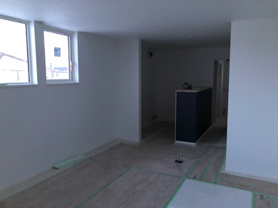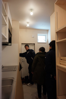 年末年始をはさみ、昨日より工事開始しております。 一階大工造作、二階パテ工事完了し、クロス工事行なっております。 現場打ち合わせを行い、仕上がり状況確認しました。