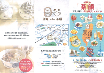プロジェクト「taiwanchaying」の台湾カフェ 茶韻(ちゃいん)が2002年2月16日(日)オープンいたします!